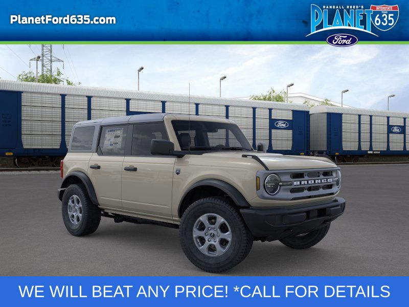 Desert Sand 2025 Ford Bronco Big Bend Big Bend 2.3L EcoBoost® I-4 4WDEquipment Group 222A Mid Package (2-Door Intelligent Access w/Lock/Unlock, Ambient Footwell Lighting, Connected Navigation, Dr & Pass Illuminated Sliding Visor Vanity Mirrors, Dual Smart Charging USB Ports, Dual-Zone Electronic Automatic Temperature Control, Front Row Heated Seats, Power Outlet – Back Side of Center Floor Console, and Rear Parking Sensors), 4-Wheel Disc Brakes, 4.46 Axle Ratio, 7 Speakers, ABS brakes, Air Conditioning, Alloy wheels, AM/FM radio: SiriusXM with 360L, AM/FM Stereo, Auto High-Beam Headlamps, Auto High-beam Headlights, BLIS Blind Spot Information System, Brake assist, Carbonized Gray Molded-In-Color Hard Top, Cloth Bucket Seats, Compass, Delay-off headlights, Driver door bin, Driver vanity mirror, Dual front impact airbags, Dual front side impact airbags, Electronic Stability Control, Emergency communication system: 911 Assist, Exterior Parking Camera Rear, Front anti-roll bar, Front Bucket Seats, Front Center Armrest, Front License Plate Bracket, Front reading lights, Front wheel independent suspension, Fully automatic headlights, Heated door mirrors, Illuminated entry, Integrated roll-over protection, Internet access capable: FordPass Connect, Lane-Keeping System, Leather Shift Knob, Low tire pressure warning, Occupant sensing airbag, Outside temperature display, Overhead airbag, Overhead console, Panic alarm, Passenger door bin, Passenger vanity mirror, Power door mirrors, Power steering, Power windows, Pre-Collision Assist w/Automatic Emergency Braking, Radio data system, Rear-View Camera, Rear-Window Defroster & Washer, Remote keyless entry, Security system, SiriusXM w/360L, Speed control, Split folding rear seat, Steering wheel mounted audio controls, SYNC® 4, Tachometer, Telescoping steering wheel, Tilt steering wheel, Traction control, Trip computer, Variably intermittent wipers, and Wheels: 17″ Carbonized Gray-Painted Aluminum.