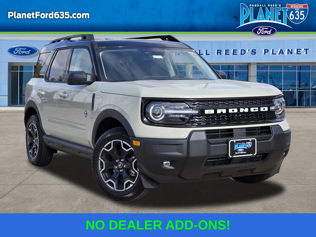 Desert Sand 2025 Ford Bronco Sport Outer Banks Demo Outer Banks Demo 1.5L EcoBoost® 4WD 8-Speed Automatic Equipment Group 300A, 4-Wheel Disc Brakes, 6 Speakers, ABS brakes, Air Conditioning, Alloy wheels, AM/FM radio: SiriusXM, AM/FM Stereo, Auto High-beam Headlights, Auto-dimming Rear-View mirror, Automatic temperature control, Brake assist, Compass, Delay-off headlights, Driver door bin, Driver vanity mirror, Dual front impact airbags, Dual front side impact airbags, Electronic Stability Control, Emergency communication system: SYNC® 4 911 Assist, Four wheel independent suspension, Front anti-roll bar, Front Bucket Seats, Front Center Armrest, Front Driver/Passenger Seat Back Map Pockets, Front dual zone A/C, Front fog lights, Front License Plate Bracket, Front reading lights, Fully automatic headlights, Garage door transmitter, Heated door mirrors, Heated front seats, Heated steering wheel, Illuminated entry, Knee airbag, Low tire pressure warning, Memory seat, Occupant sensing airbag, Outside temperature display, Overhead airbag, Overhead console, Panic alarm, Passenger door bin, Passenger vanity mirror, Power door mirrors, Power driver seat, Power passenger seat, Power steering, Power windows, Premium Trimmed Front Bucket Seats w/Ebony/Roast, Radio data system, Rain sensing wipers, Rear anti-roll bar, Rear Parking Sensors, Rear reading lights, Rear seat center armrest, Rear window defroster, Rear window wiper, Remote keyless entry, Security system, SiriusXM, Speed control, Speed-sensing steering, Speed-Sensitive Wipers, Split folding rear seat, Steering wheel mounted audio controls, SYNC® 4 w/Enhanced Voice Recognition, Tachometer, Telescoping steering wheel, Tilt steering wheel, Traction control, Trip computer, Variably intermittent wipers, and Wheels: 18″ Ebony Black-Painted Aluminum. Price includes all rebates, excludes TT&L$3000 – Retail Customer Cash. Exp. 04/30/2026