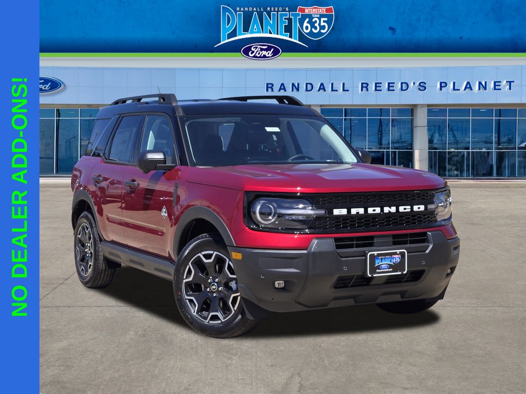 Ruby Red 2026 Ford Bronco Sport Outer Banks Demo Outer Banks Demo 1.5L EcoBoost® 4WD 8-Speed Automatic Ford Connectivity Package (1-Year Included), Internet access capable: 5G Modem – Ford Connectivity Package, Outer Banks Tech Package+ (Connected Navigation (1-Year Included) and Radio: HD w/B&O Sound System by Bang & Olufsen), 360-Degree Camera with Trail View, 4-Wheel Disc Brakes, 6 Speakers, ABS brakes, Air Conditioning, Alloy wheels, AM/FM radio: SiriusXM with 360L, AM/FM Stereo, Apple CarPlay/Android Auto, Auto High-beam Headlights, Auto-dimming Rear-View mirror, Automatic temperature control, Brake assist, Compass, Delay-off headlights, Driver door bin, Driver vanity mirror, Dual front impact airbags, Dual front side impact airbags, Electronic Stability Control, Emergency communication system: SYNC® 4 911 Assist, Exterior Parking Camera Rear, Four wheel independent suspension, Front anti-roll bar, Front Bucket Seats, Front Center Armrest, Front Driver/Passenger Seat Back Map Pockets, Front dual zone A/C, Front fog lights, Front License Plate Bracket, Front Parking Sensors, Front reading lights, Fully automatic headlights, Heated door mirrors, Heated front seats, Heated steering wheel, Illuminated entry, Knee airbag, Low tire pressure warning, Memory seat, Occupant sensing airbag, Outside temperature display, Overhead airbag, Overhead console, Panic alarm, Passenger door bin, Passenger vanity mirror, Power door mirrors, Power driver seat, Power passenger seat, Power steering, Power windows, Radio data system, Rear anti-roll bar, Rear Parking Sensors, Rear reading lights, Rear seat center armrest, Rear window defroster, Rear window wiper, Remote keyless entry, Reverse Brake Assist, Security system, SiriusXM with 360L, Speed control, Speed-sensing steering, Speed-Sensitive Wipers, Split folding rear seat, Steering wheel mounted audio controls, SYNC® 4 with Enhanced Voice Recognition, Tachometer, Telescoping steering wheel, Tilt steering wheel, Traction control, Trip computer, Variably intermittent wipers, and Wheels: 18″ Ebony Black.