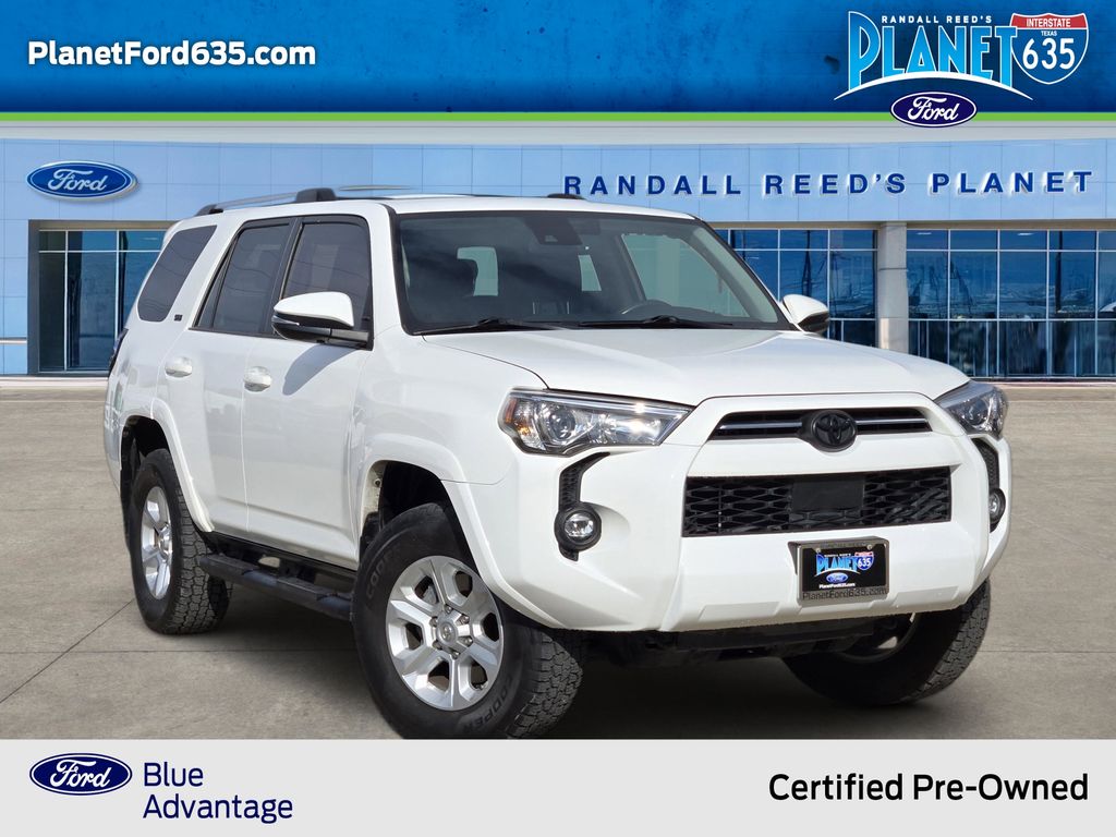 Super White 2021 Toyota 4Runner SR5 Premium 4WD 5-Speed Automatic with Overdrive 4.0L V6 SMPI DOHC 4WD, Graphite Artificial Leather.Certification Program Details: Ford Blue Advantage: Blue Certified* 139 Point Inspection* Transferable Warranty* Vehicle History* Warranty Deductible: $100* Roadside Assistance* Limited Warranty: 3 Month/4,000 Mile (whichever comes first) after New Car warranty expires or from certified purchase date* and 11,000 FordPass Rewards Points to use toward first maintenance visitMoonroof Package (Moonroof w/Tilt Up & Slide), SR5 Premium Package w/Softex (Body Color Heated Mirrors, Garage Door Opener, and Wireless Smart Entry Door Lock), Ford Blue Advantage: Blue Certified Certified, 4WD, Graphite Artificial Leather, 17″ x 7.0″ 6-Spoke Alloy Wheels, 3.727 Axle Ratio, 4-Wheel Disc Brakes, 8 Speakers, ABS brakes, Air Conditioning, Alloy wheels, AM/FM radio: SiriusXM, Anti-whiplash front head restraints, Apple CarPlay/Android Auto, Auto High-beam Headlights, Auto-dimming Rear-View mirror, Brake assist, Bumpers: body-color, Compass, Driver door bin, Driver vanity mirror, Dual front impact airbags, Dual front side impact airbags, Electronic Stability Control, Emergency communication system: Safety Connect with 1-year trial, Exterior Parking Camera Rear, Front anti-roll bar, Front Bucket Seats, Front Center Armrest, Front fog lights, Front reading lights, Front wheel independent suspension, Garage door transmitter: HomeLink, Heated door mirrors, Heated Front Bucket Seats, Heated front seats, Illuminated entry, Knee airbag, Leather Shift Knob, Leather steering wheel, Low tire pressure warning, Occupant sensing airbag, Outside temperature display, Overhead airbag, Overhead console, Panic alarm, Passenger door bin, Passenger vanity mirror, Power door mirrors, Power driver seat, Power passenger seat, Power steering, Power windows, Radio: Premium Audio w/Dynamic Navigation, Rear anti-roll bar, Rear seat center armrest, Rear window defroster, Rear window wiper, Remote keyless entry, Roof rack: rails only, Security system, Softex Synthetic Leather Seat Trim, Softex-Trimmed 50/50 Split Fold-Flat 3rd Row, Speed control, Speed-sensing steering, Split folding rear seat, Spoiler, Steering wheel mounted audio controls, Tachometer, Telescoping steering wheel, Tilt steering wheel, Traction control, Trip computer, Trunk Carpet, Turn signal indicator mirrors, and Variably intermittent wipers.